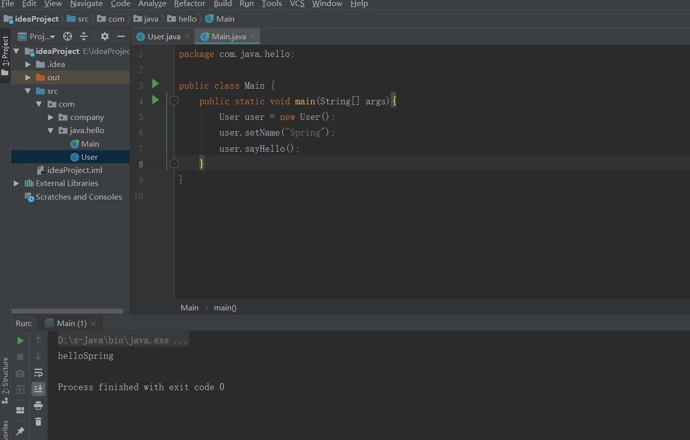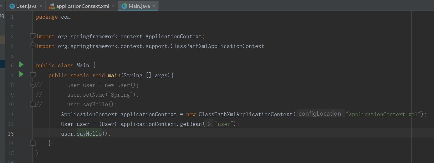 在java开发中,实际是创建了一个User对象,调用了实例对象的name属性,调用了sayHello()方法;而在spring来发中,是创建了一个Spring的IOC容器对象,从容器对象中获取Bean实例,调用sayHello()方法。