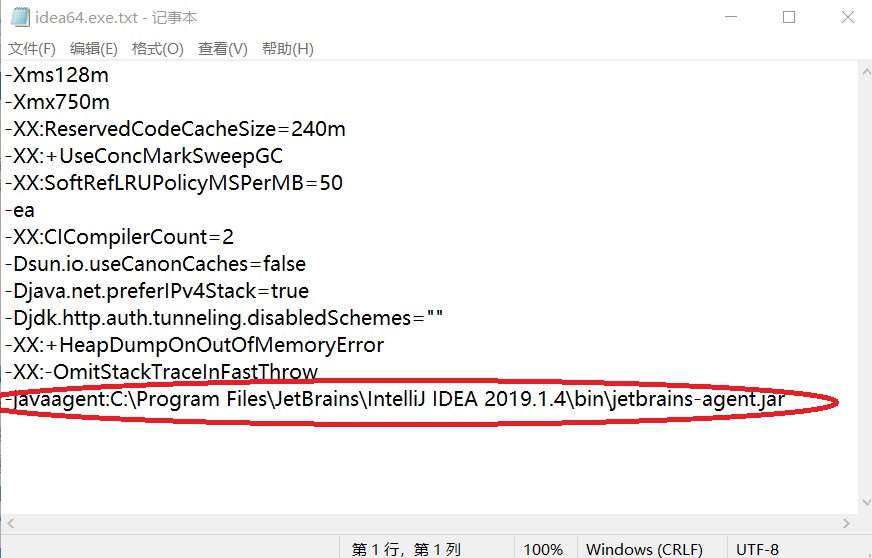 -javaagent:C:\Program Files\JetBrains\IntelliJ IDEA 2019.1.4\bin\jetbrains-agent.jar```