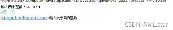 编写程序:创建类Computer,该类有一个计算两个整数的最大公约数的方法,如果该方法的参数是负数,则该方法抛出自定义异常;对Computer类进行验证。