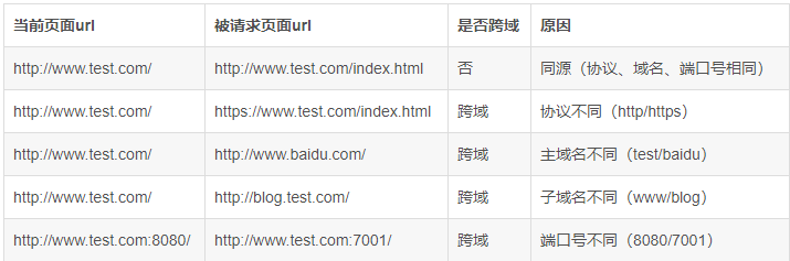 ????????请求url的协议,域名,端口三者之间任意一个与当前页面url不同的即为跨域。