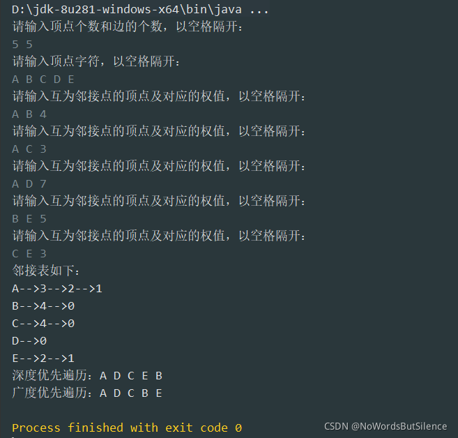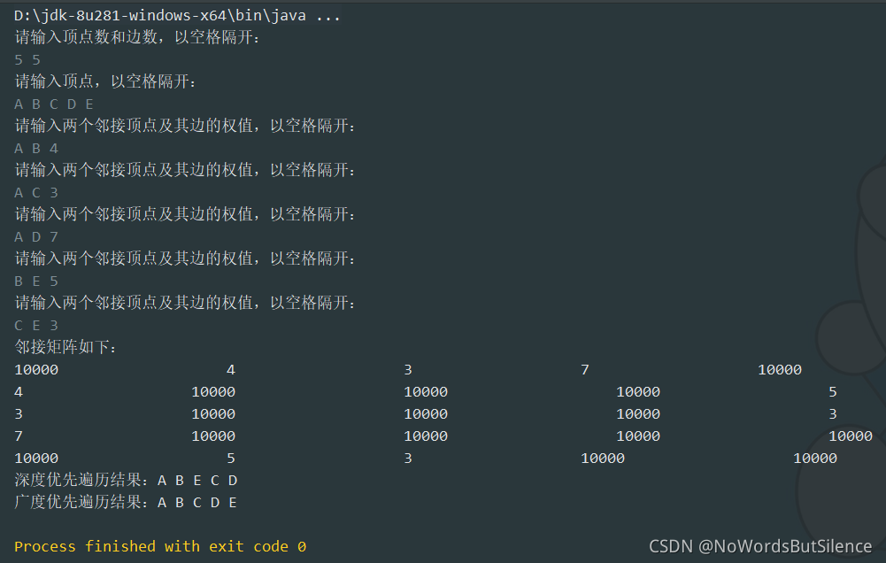 System.out.println("请输入顶点数和边数,以空格隔开:");