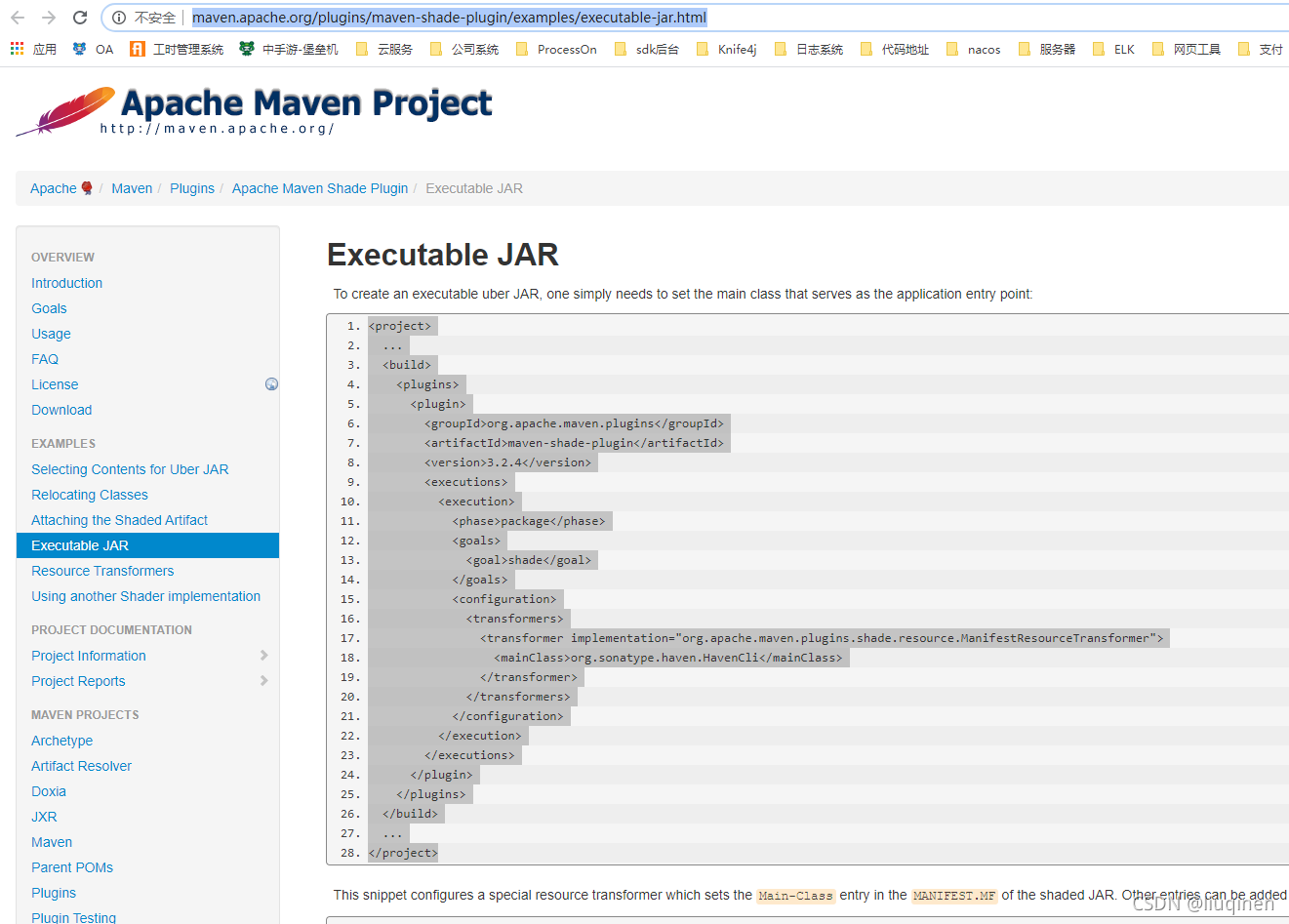 ?参考官方文档:http://maven.apache.org/plugins/maven-shade-plugin/examples/executable-jar.html