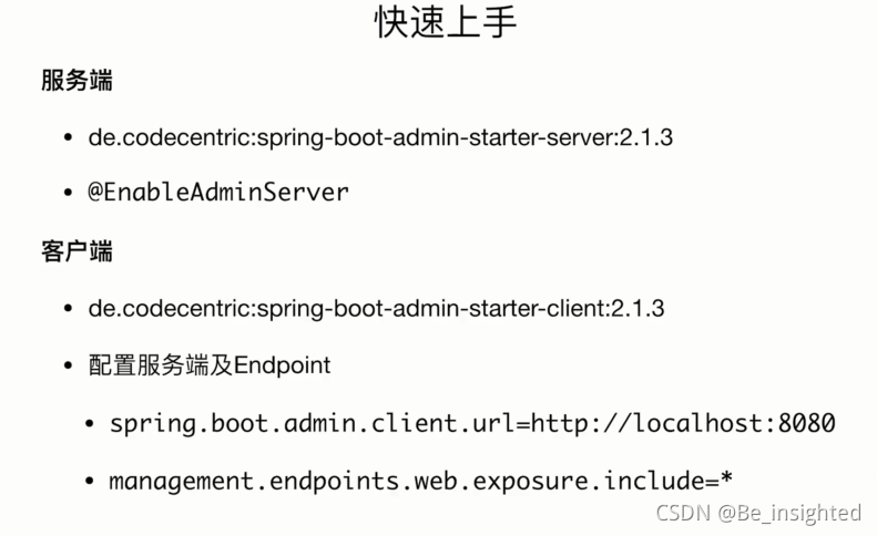 Spring Boot Admin 目的 ????????·为Spring Boot应用程序提供一套管理界面 主要功能 ????????·集中展示应用程序Actuator相关的内容 ????????·变更通知