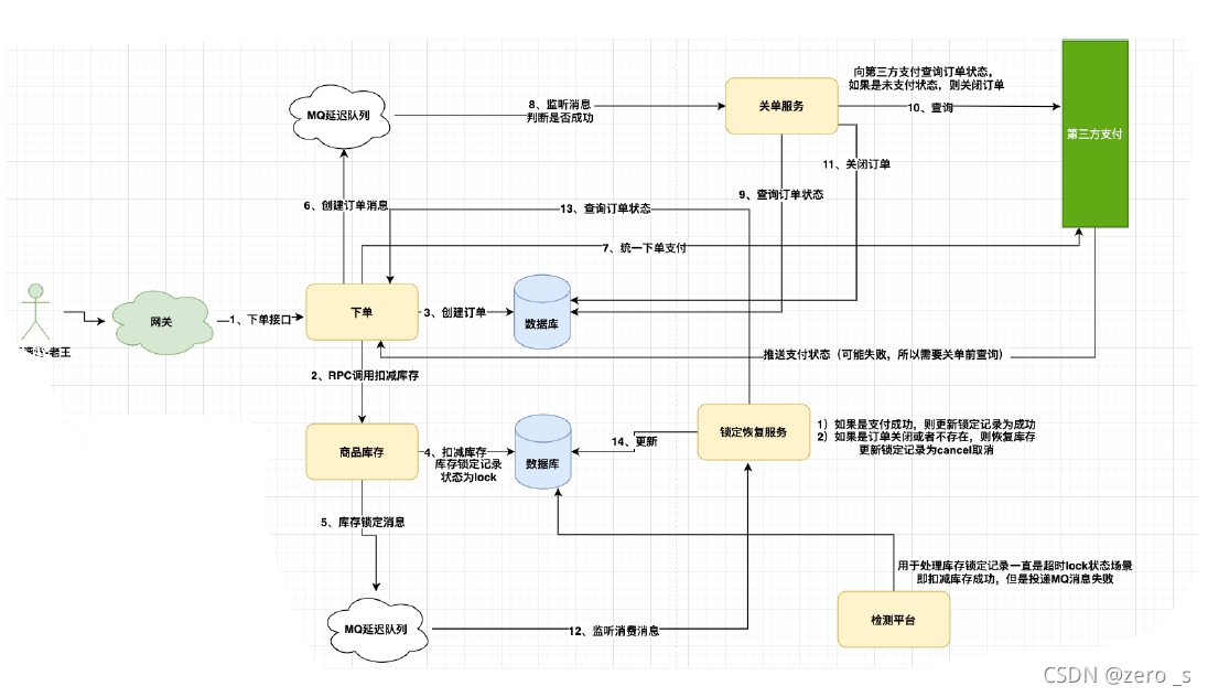 之后生成一个库存锁定记录,标注这个订单号关联的用户、商品以及买了几件,这部分信息会存储在mysql的表里面;同时会发送一个延迟消息到MQ 里面;