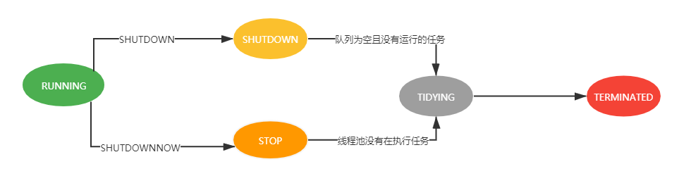 线程处于关闭状态,不接受新任务,但可以处理已添加的任务。RUNNING状态的线程池调用shutdown后会进入SHUTDOWN状态。