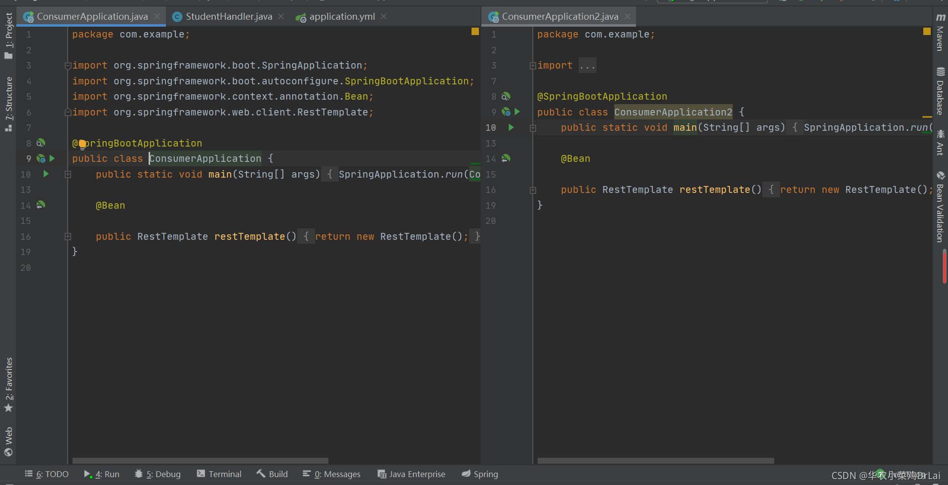 - ?你没看错,这是两个一模一样的Springboot启动程序,我们先创建好两个启动程序