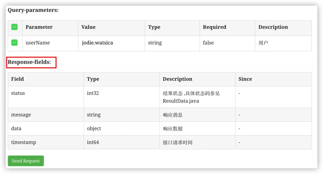 生成接口文档后我们通过 http://localhost:8080/doc/api.html查看,效果如下:
