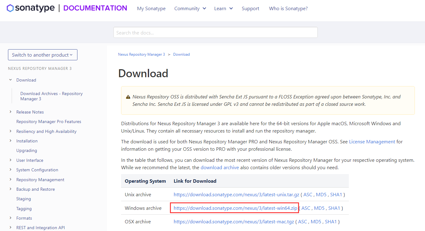 下载地址为:https://help.sonatype.com/repomanager3/download
