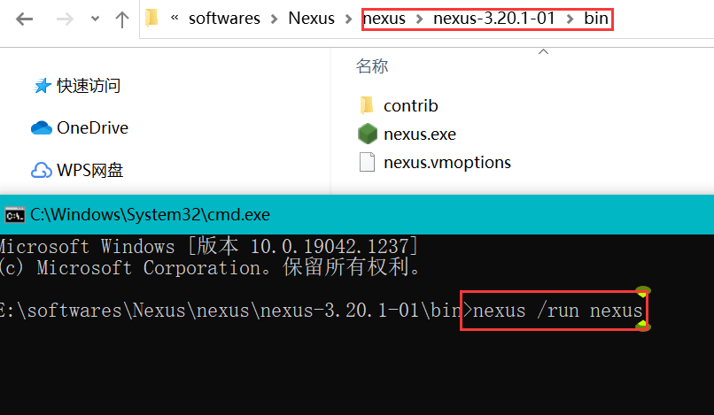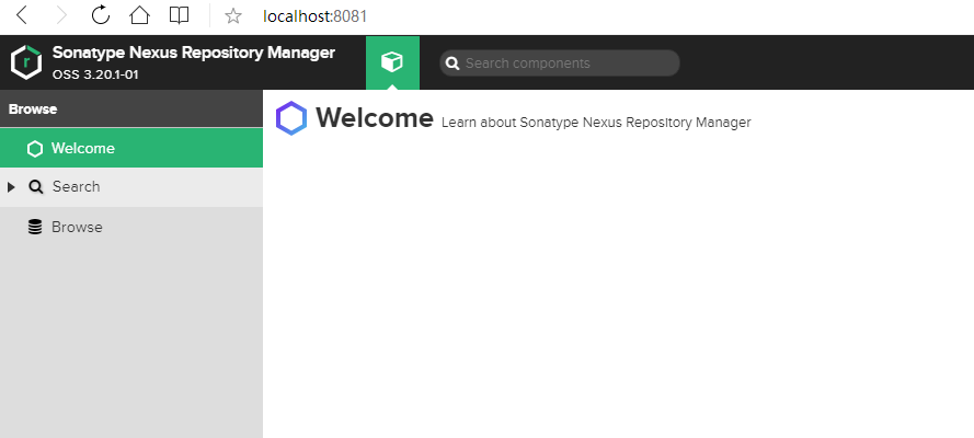 启动命令为:nexus /run nuxus   访问地址为:http://localhost:8081/