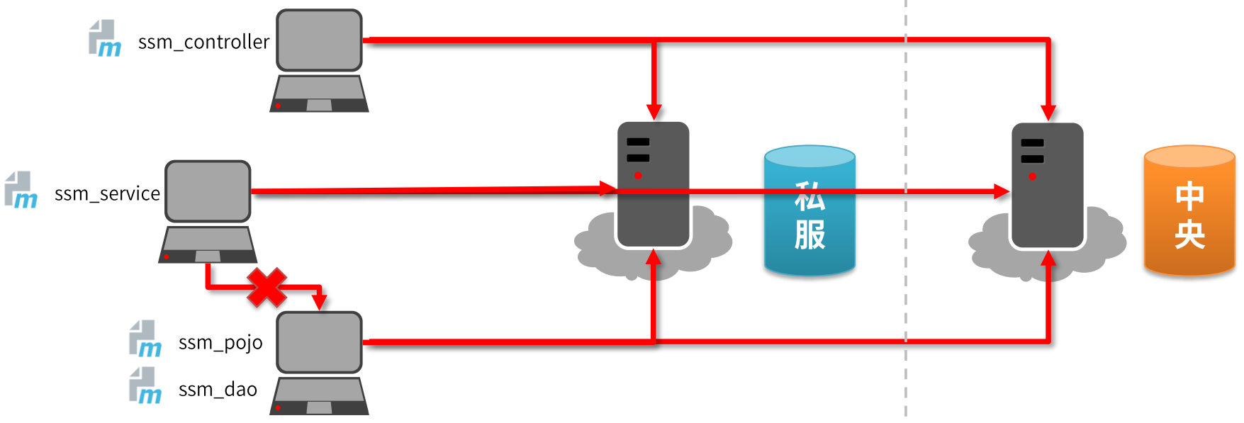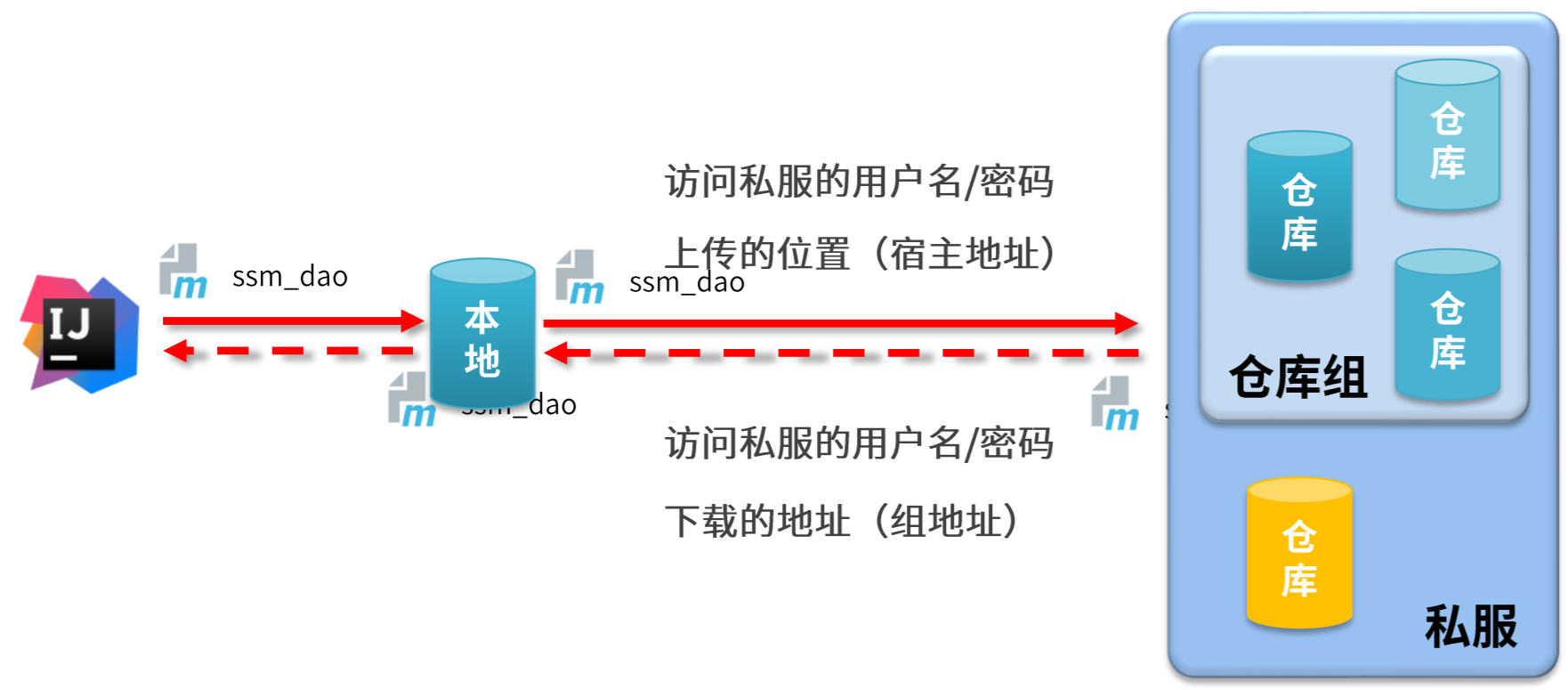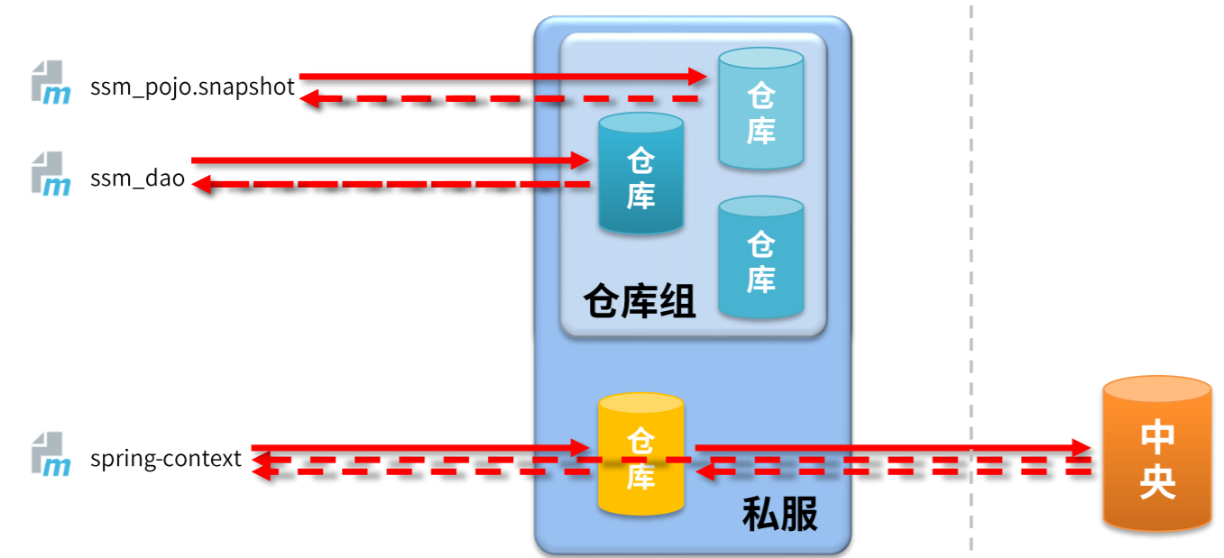 私服 | 部门/公司范围内存储资源的仓库,从中央仓库获取资源 |