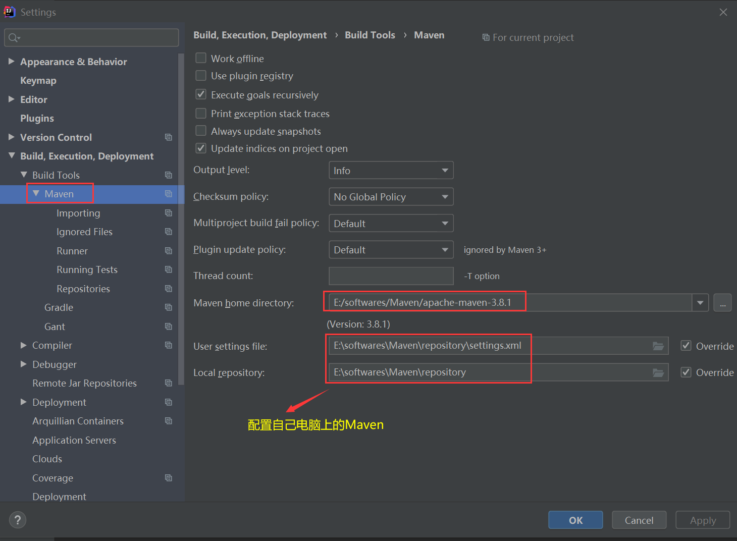 <localRepository>E:\softwares\Maven\repository</localRepository>