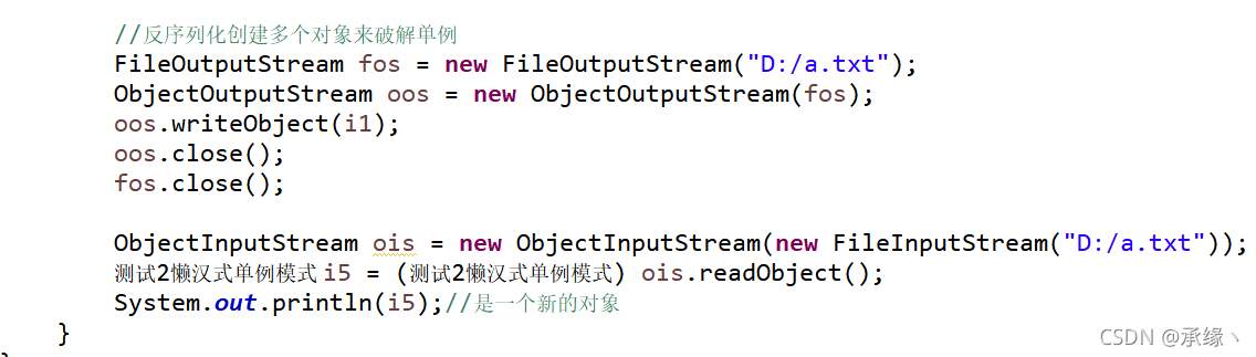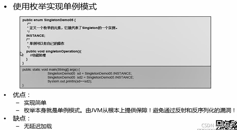 枚举元素本身就是单例。但是他没有延时加载。可以防止反射和反序列化漏洞。