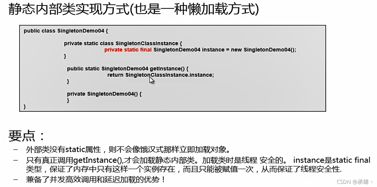 作用:保证一个类只有一个实例,并且提供一个访问该实例的全局访问点。