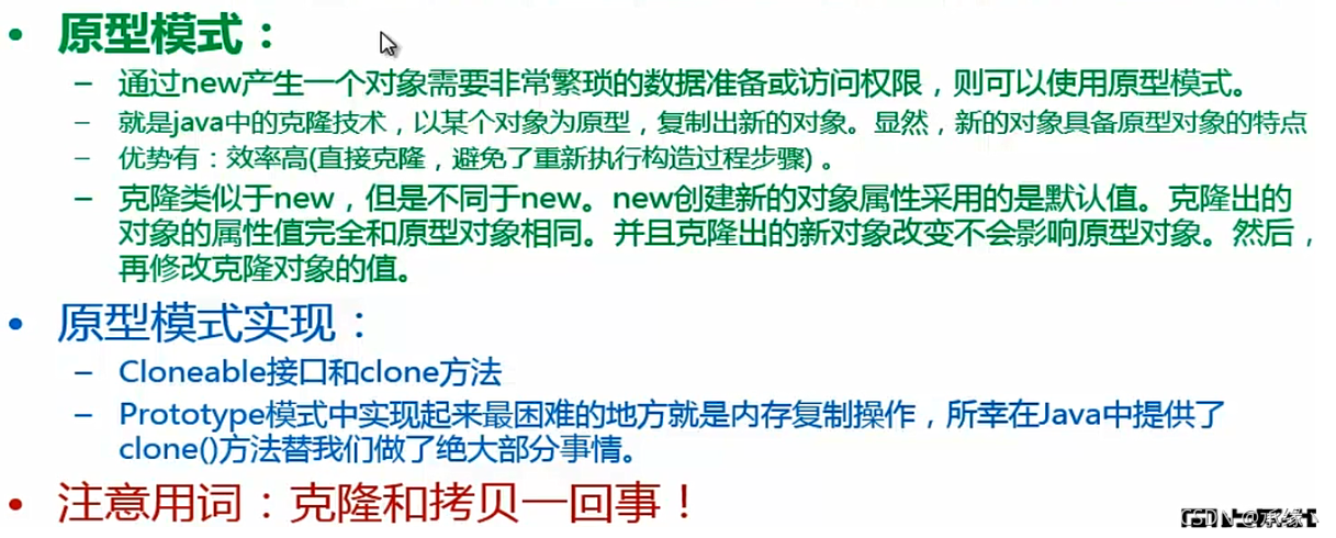 在使用new产生新对象比较耗时的情况下,我们可以使用clone来进行新对象的创建。