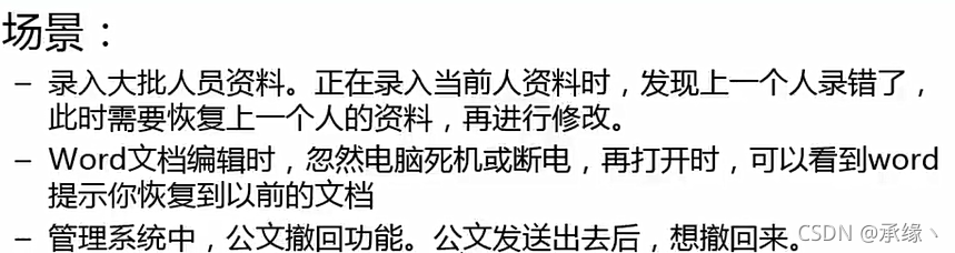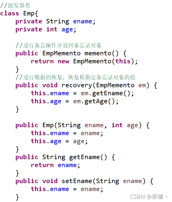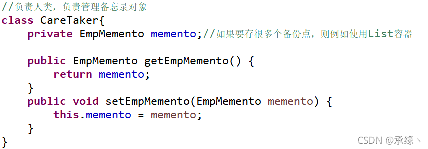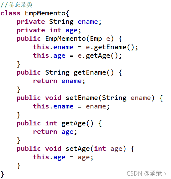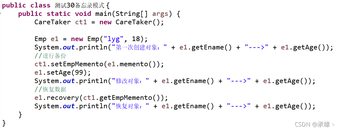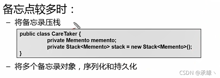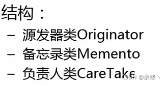 核心就是保存某个对象内部状态的拷贝,这样以后就可以将该对象恢复到原先的状态。
