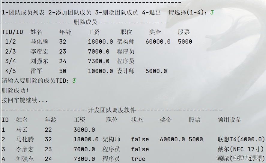 ???????这篇博客的内容是接着我的上一篇博客《Java小白实践项目初体验——项目开发团队分配管理软件(一)》。因为篇幅限制,上一篇博客只给小伙伴们分享了项目的前两个模块,这次我给大家分享下剩下的两个模块:开发团队调度管理模块、开发项目管理模块。
