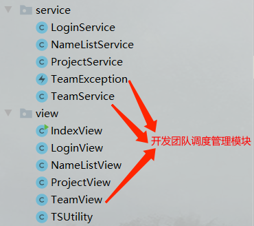 ? ? 与开发团队调度管理模块相关的类有3个:TeamException、TeamService和TeamView。