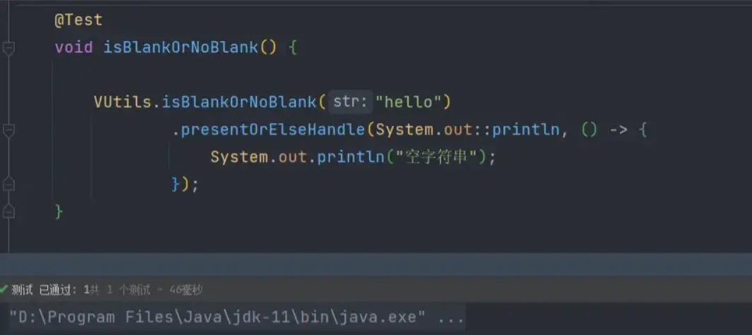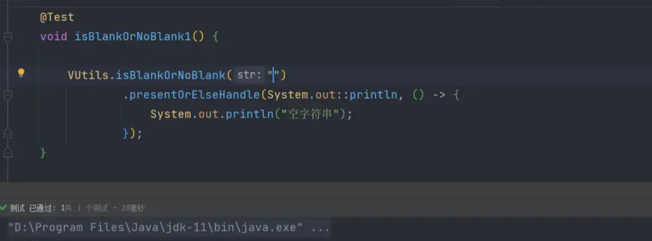 编写判断方法 创建一个名为isBlankOrNoBlank的方法,方法的返回值为刚才定义的函数式接口-PresentOrElseHandler。