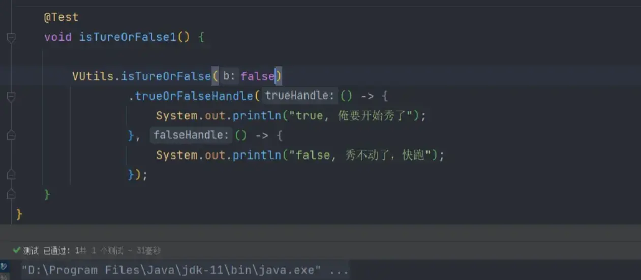 编写判断方法 创建一个名为isTureOrFalse的方法,方法的返回值为刚才定义的函数式接口-BranchHandle。