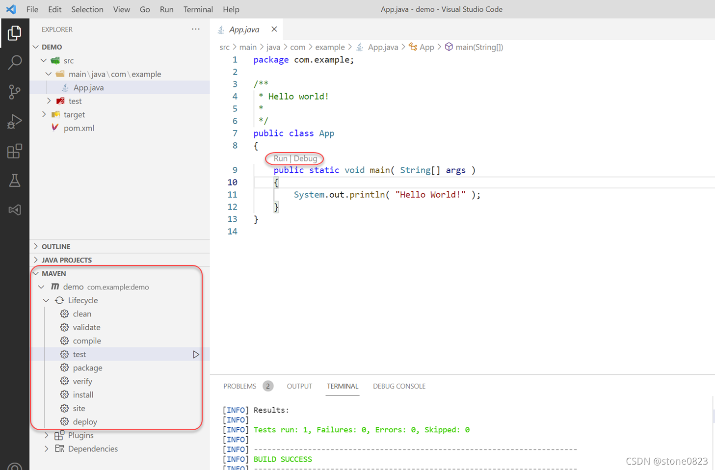 项目可以基于 Debugger for Java 来运行和调试,也可以基于 Maven 进行管理,比如 clean, build, test 等。