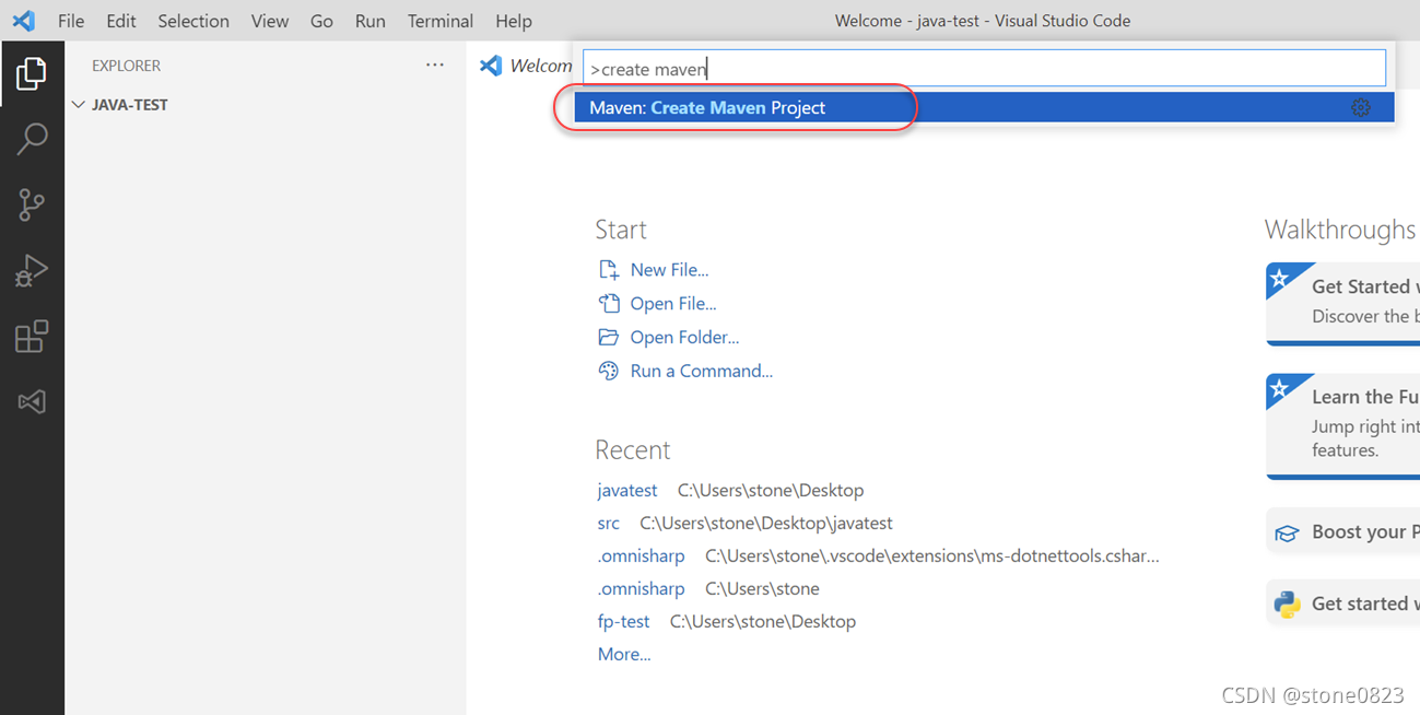 1、安装 Maven for Java 插件 2、在 Visual Studio Code 中通过 Ctrl + Shift + P 打开命令面板,查找 Create Maven Project 命令: