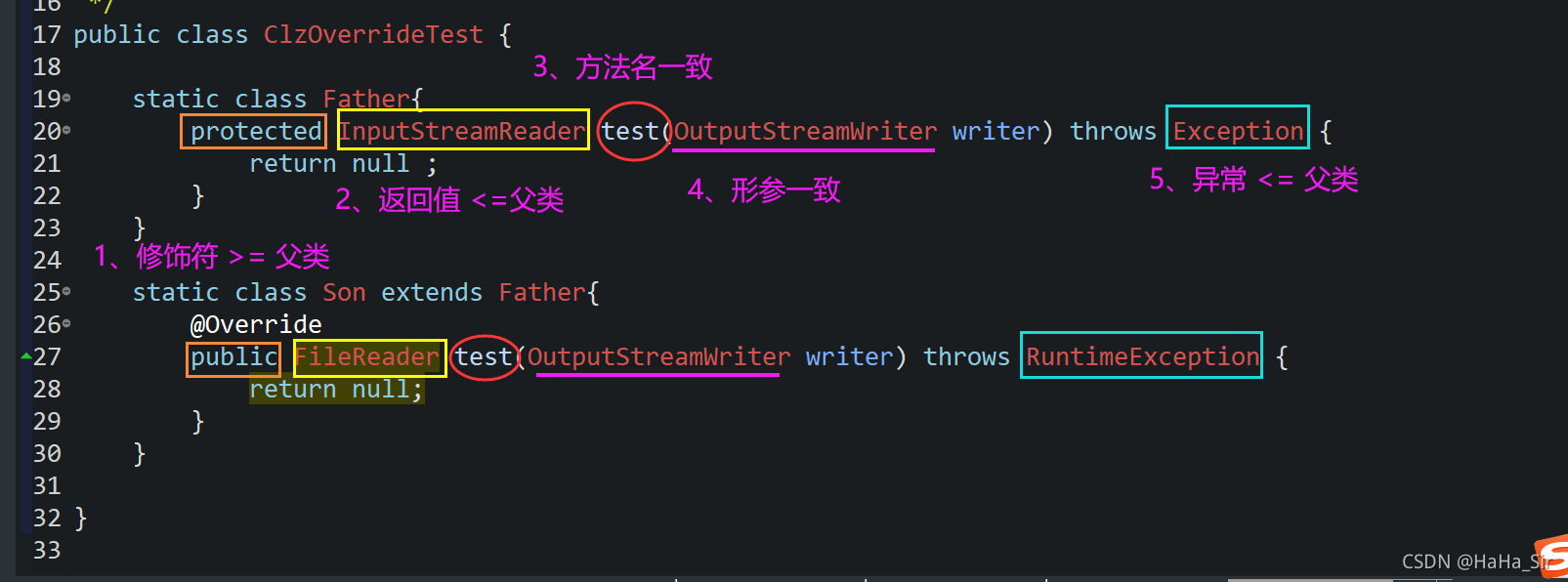 ????????2、分别调整 修饰符、返回值、方法名、形参 、 异常 的类型,观察是否报错