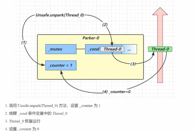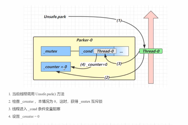 每个线程都有自己的一个 Parker 对象,由三部分组成 _counter , _cond 和 _mutex