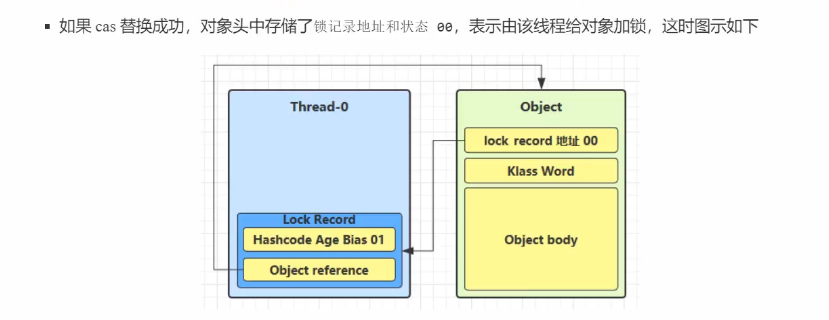 该对象obj成为mointer对象的所有者owner,并将对象头的Mark Word设置为 Monitor对象地址,锁标志位改为10标记为重量级锁;