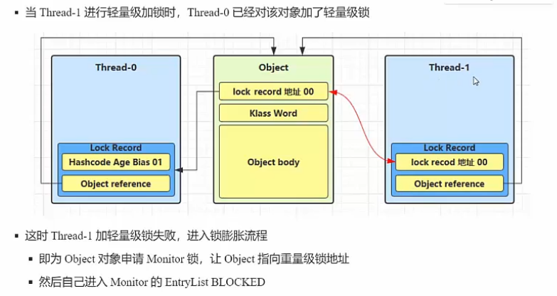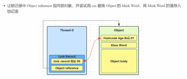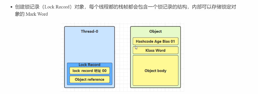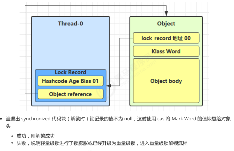 当退出 synchronized 代码块(解锁时)如果有取值为 null 的锁记录,表示有重入,这时重置锁记录,表示重入计数减一  为什么升级为轻量锁时要把对象头里的Mark Word复制到线程栈的锁记录中呢?