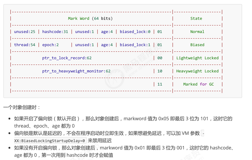 偏向锁:单个线程的时候,会开启偏向锁。可以使用-XX:-UseBiasedLocking来禁用偏向锁。