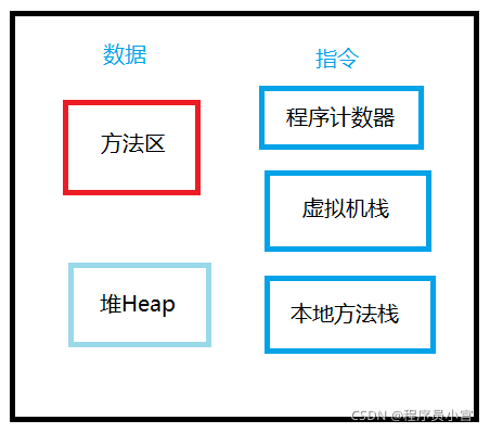 1.程序计数器:它是一块较小的内存空间,可以看做是指向当前线程所执行的字节码的行号指示器。字节码解释器工作时就是通过改变这个计数器的值来选取下一条需要执行的字节码指令,分支、循环、跳转、异常处理、线程回复等基础功能都需要依赖计数器来完成。 2.本地方法栈:调用系统底层资源。 3.方法区(数据区或共享区或共享数据区):存放全局变量,静态变量,字符串常量和方法。 4.栈:存放方法参数值和局部变量。 5.堆:存放对象 ,即所有需要通过new创建的。