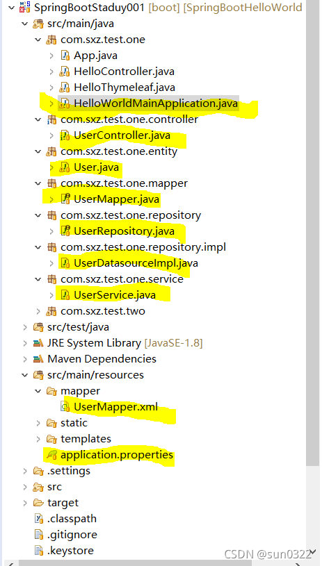 因为这里面有【@MapperScan("com.sxz.test.one.mapper")】,所以可以自动加载这个包下面的类