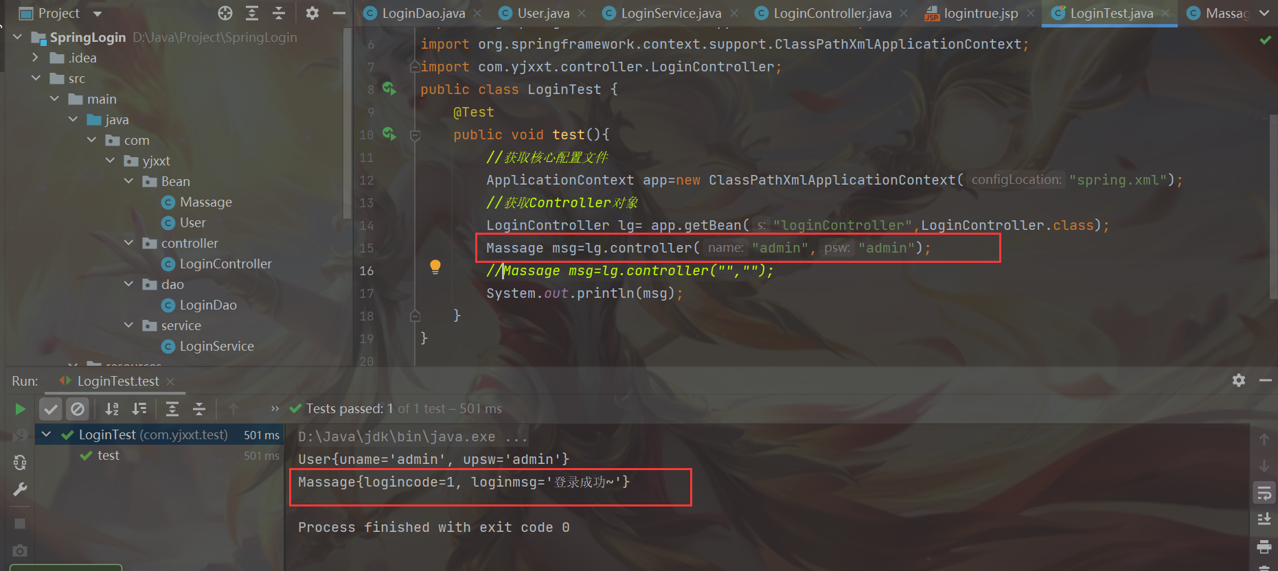 - 主要思路:dao层进行用户的查找,service层对dao层反馈的用户信息与controller层输入的信息进行逻辑判断,controller层进行调用service校验。