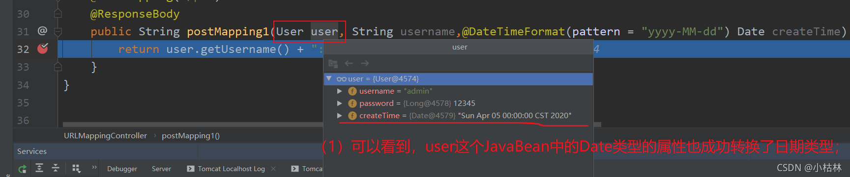 ? ? ?●?但是,在一个大型系统中,往往会出现这种情况:99%的情况下,前端输入的日期格式是形如【2020-05-04】的格式,此时我们的转换器类是没问题的: