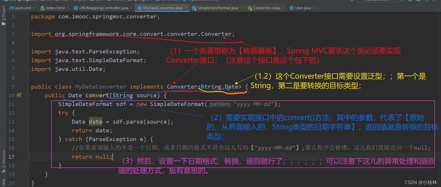 (3)本篇博客包含【@DateTimeFormat注解的使用】和【Converter转换器类的使用和配置】两部分;