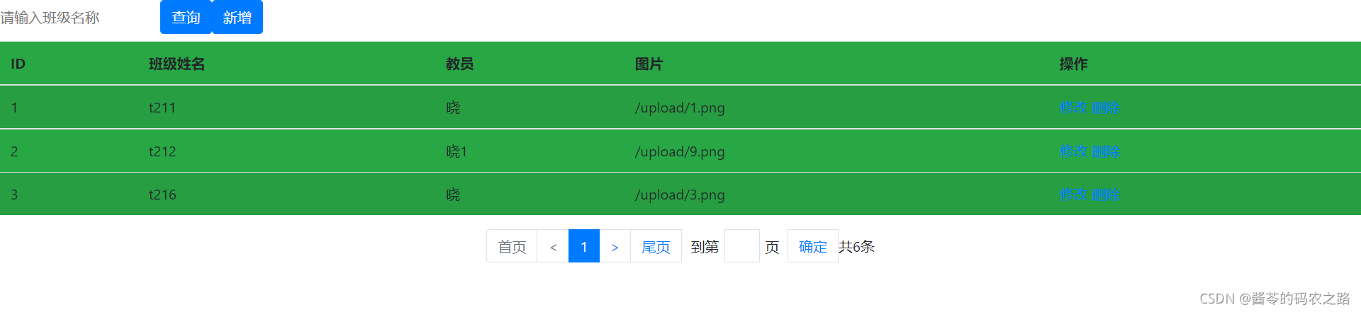 <th scope='col'>班级名字</th>