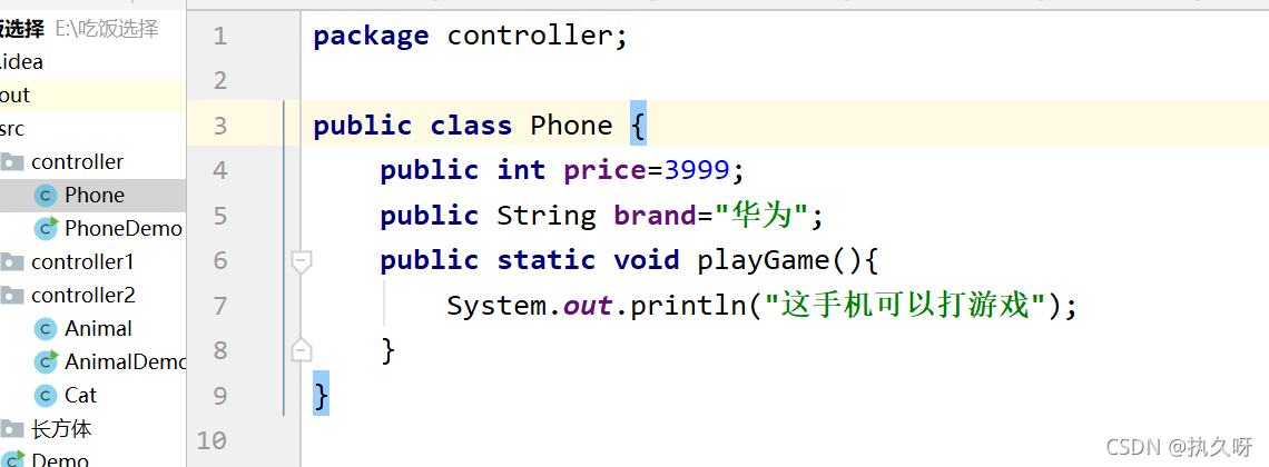 类名?对象名=new 类名();举例 Phone? p=new Phone();