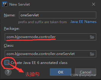 <servlet-class>com.bjpowernode.controller.OneServlet</servlet-class><!--Servlet接口实现类路径-->