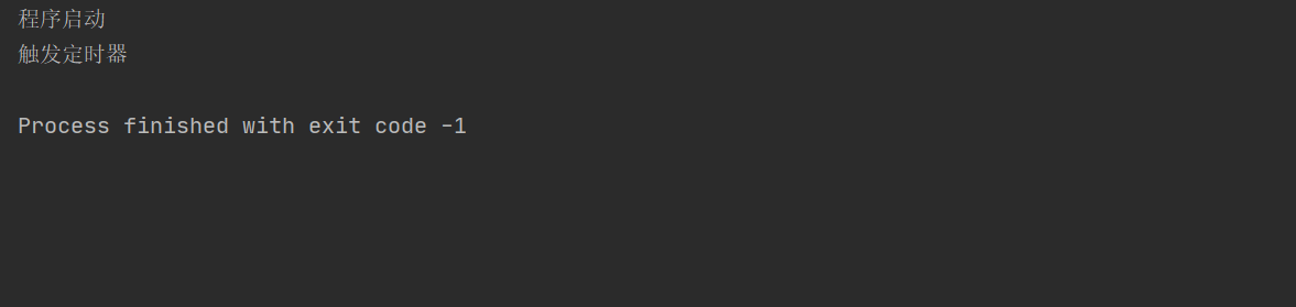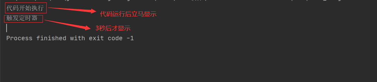 结果如下:“程序启动” 在程序启动是立刻显示出来;“触发定时器”在3秒后显示出来。