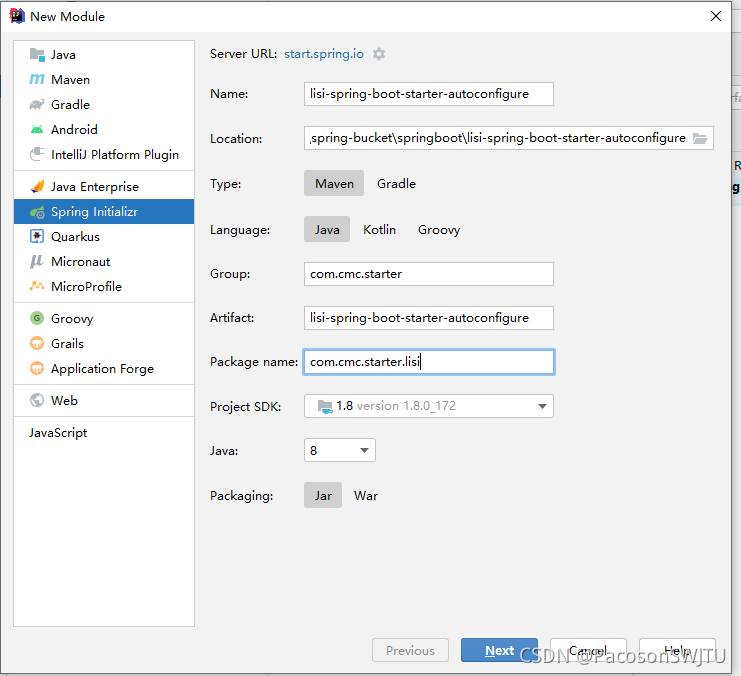 ?lisi-spring-boot-starter-autoconfigure 通过 spring Initializer 工具创建;