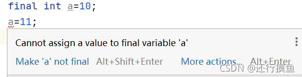 特点 被final修饰的类,不能被继承 被final修饰的方法,不能被重写 被final修饰的字段是个常量,值不能被修改 常量的定义形式:final 数据类型 常量名 = 值