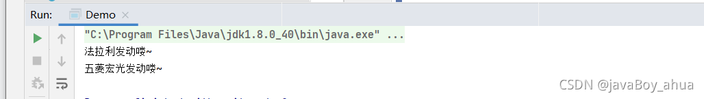 System.out.println("法拉利发动喽~");