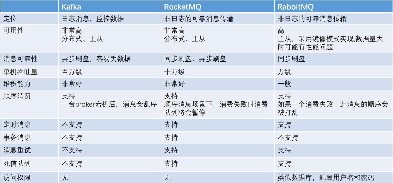 - ActiveMQ:Apache 比较老的一个开源的消息中间件,完全支持 JMS 规范、API 丰富,现在比较少用
