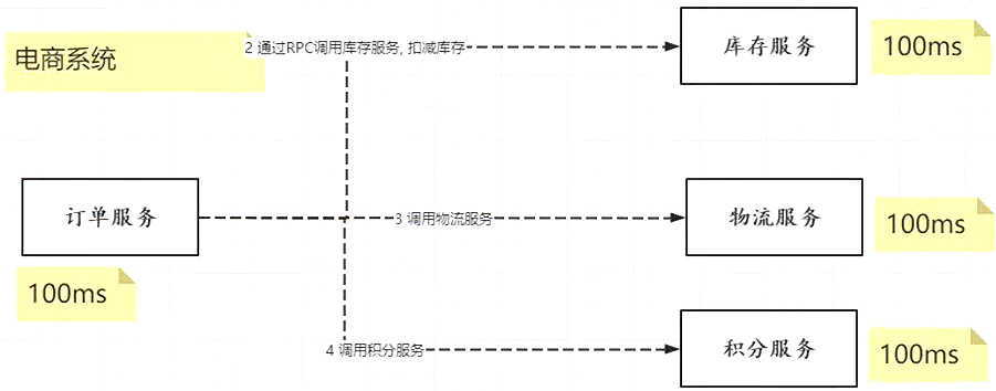 同步方式调用服务:服务和服务之间耦合性比较高,一定要执行完某个服务再执行下一个