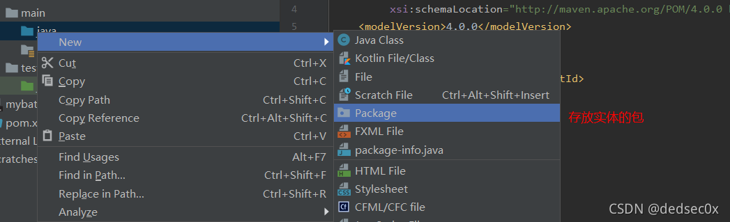 在创建好的项目中新建一个用来存放实体的包,命名为entity