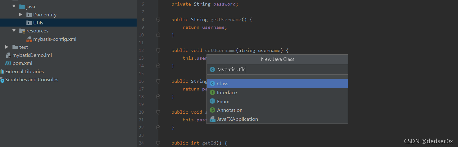 在包中创建一个java类用来编写Mybatis的工具类,命名为MybatisUtils