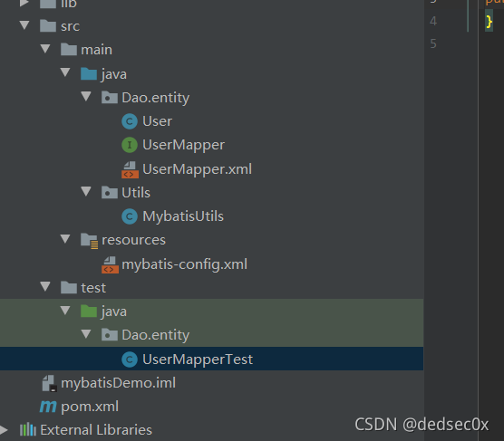 创建一个接口命名为UserMapper,创建文件命名为UserMapper.xml