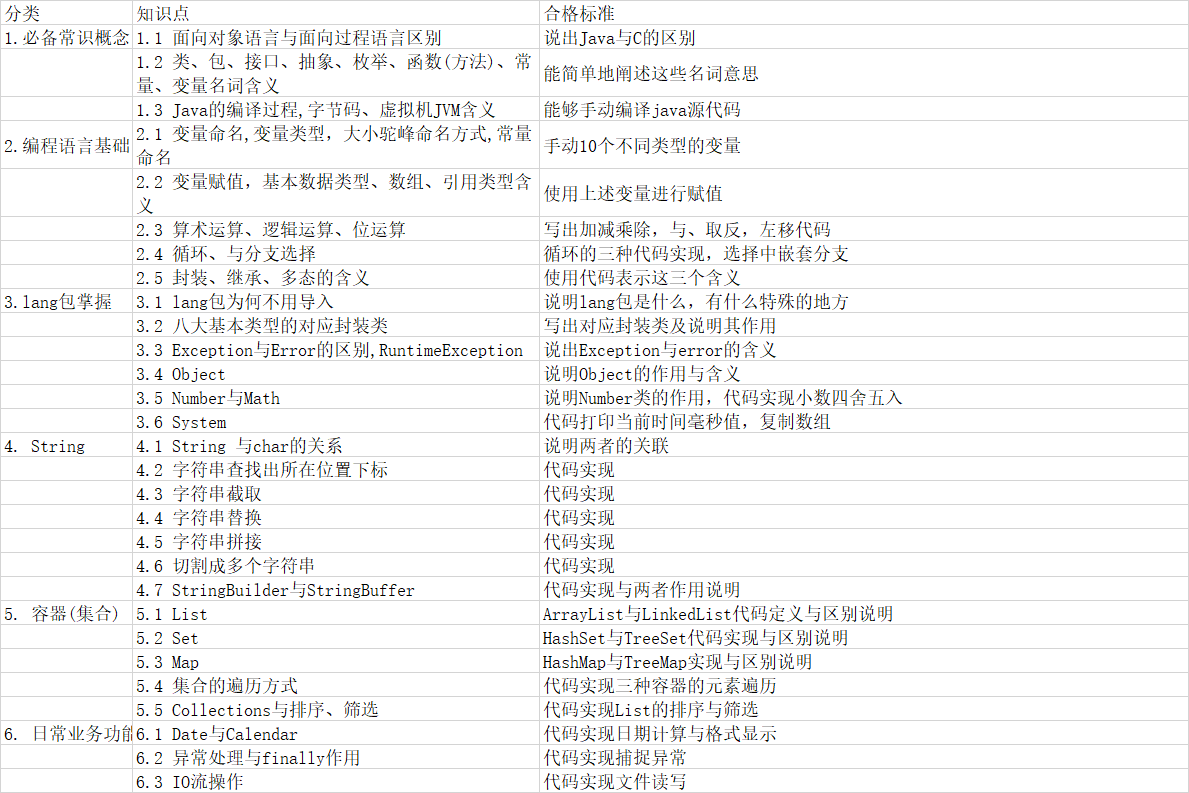 按照下面分类的知识点,形成一张表格以便时时检验自己的基本功。(此表格来源于:热心博友Pigdreams的指导)