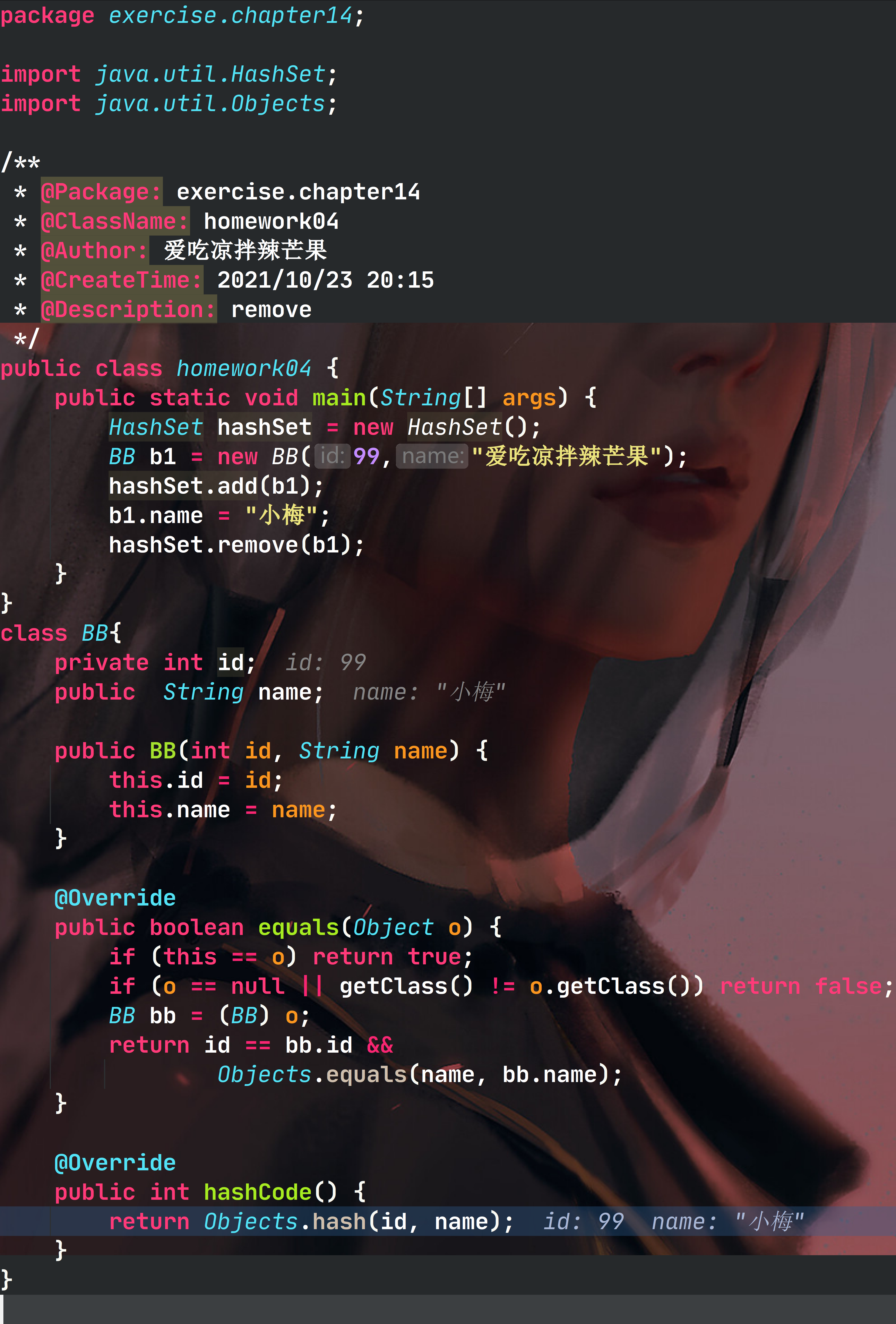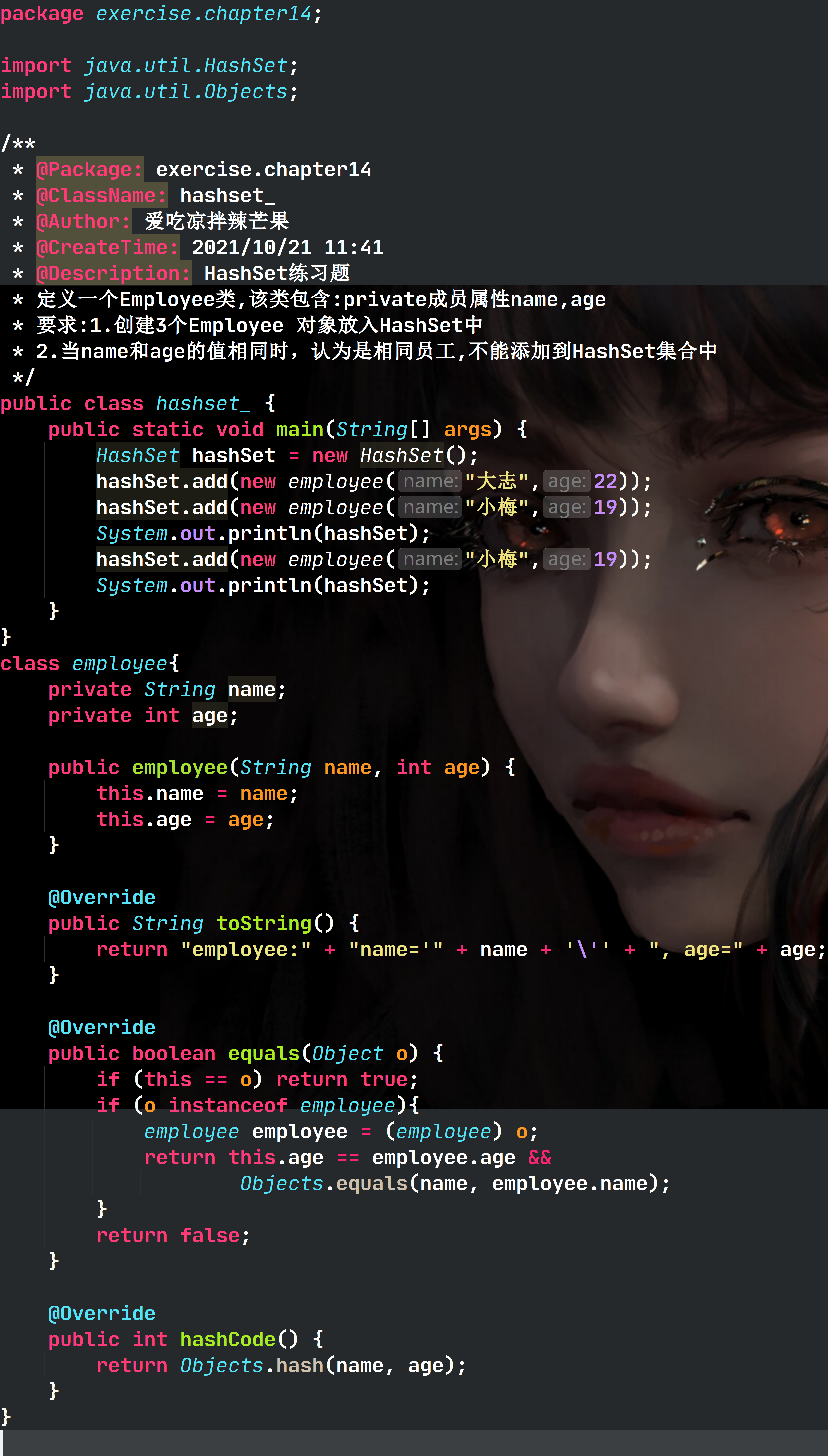 没重写equals的时候,“爱吃凉拌辣芒果”为两个对象,调用的equals继承父类equals,比较的是两个对象是否一样。明显不一样,故两个都add了。