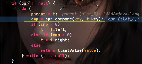 (2)在调用 treeSet.add(“AAA”), 在底层会执行,其中cpr为我们传入的匿名内部类  (3)由动态绑定机制,跳回到我们传入的匿名内部类中执行compare